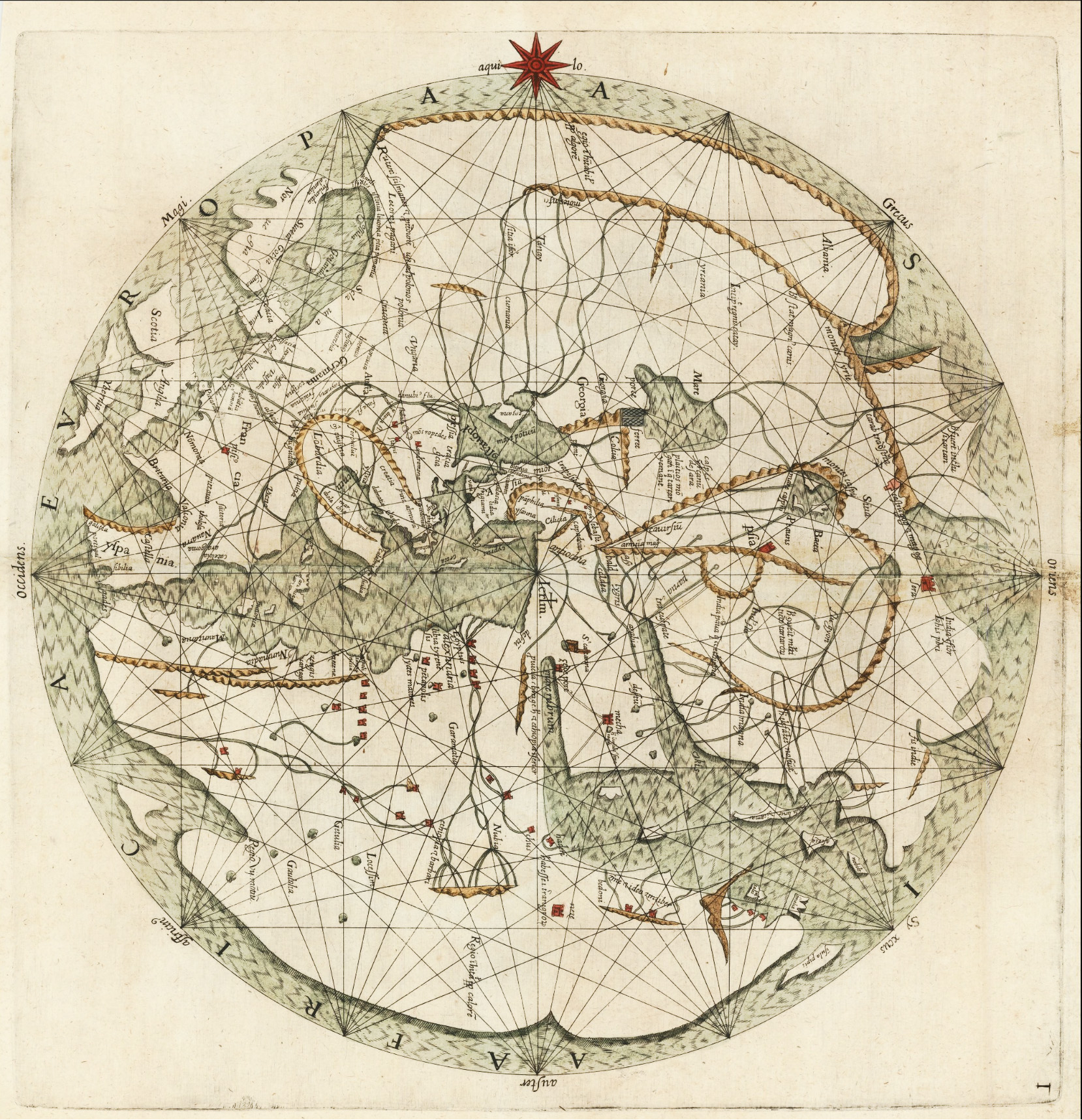 This is a reproduction of Peitre Vesconte's mappa mundi by cartographer Johann Bongars in 1611. Note that bongars flipped the map to the more modern orientation, with North toward the top of the map.